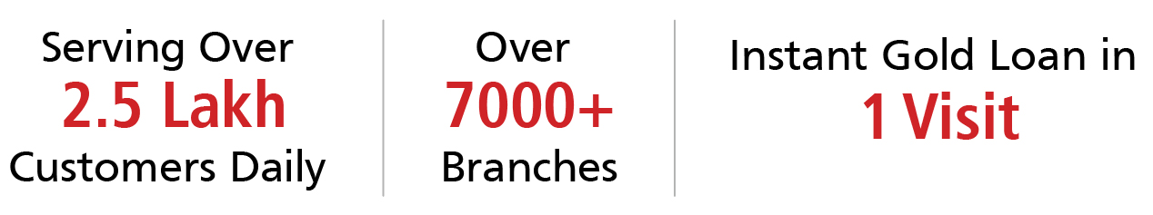 #TRA’s Brand Trust Report Minimum loan amount of Rs 1,500/- and Maximum loan amount up to Rs.5 Crore. Interest is compounded monthly at the applicable rate for each slab. Loan tenure is 12 months for a normal Gold Loan scheme Minimum Interest Rate starting from 10.5% p.a. if interest is serviced monthly. Interest is charged only for days the amount is used - Minimum 7 / 15 days applicable on the basis of GL scheme. Annual Percentage Rate offered to customers Min - 9.9% . Max - 26.82%. (T&C apply). Loan tenure: 12 Months. Sample Calculation: On Gold Loan for INR 5 lakh at the rate of 9.9% per annum, the interest amount for 30 days excluding the Admin charges will be INR 4,069/-.Pre-payment option without any penalty subject to min no. of days interest above. Privacy Policy: Your contact information (Name, Email, Phone No, State, City, Pin code, Message) submitted will not be sold, shared or rented to others. We use this information to send updates about our company and projects and contact you if requested or find it necessary. You may opt out of receiving our communication by calling us on any of our above-mentioned contact numbers or by clicking on the unsubscribe link mentioned MUTHOOT FINANCE LTD. Regd Office: 2nd Floor, Muthoot Chambers, Opposite Saritha Theatre Complex, Banerji Road, Kochi 682 018, Kerala, India | CIN: L65910KL1997PLC011300 | RBI Regn. No: N-16-00167 | Toll Free : 1800_313_1212