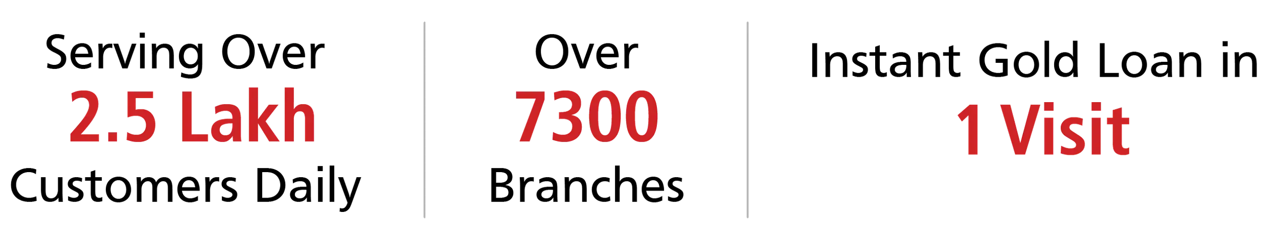 #TRA’s Brand Trust Report Minimum loan amount of Rs 1,500/- and Maximum loan amount up to Rs.5 Crore. Interest is compounded monthly at the applicable rate for each slab. Loan tenure is 12 months for a normal Gold Loan scheme Minimum Interest Rate starting from 10.5% p.a. if interest is serviced monthly. Interest is charged only for days the amount is used - Minimum 7 / 15 days applicable on the basis of GL scheme. Annual Percentage Rate offered to customers Min - 9.9% . Max - 26.82%. (T&C apply). Loan tenure: 12 Months. Sample Calculation: On Gold Loan for INR 5 lakh at the rate of 9.9% per annum, the interest amount for 30 days excluding the Admin charges will be INR 4,069/-.Pre-payment option without any penalty subject to min no. of days interest above. Privacy Policy: Your contact information (Name, Email, Phone No, State, City, Pin code, Message) submitted will not be sold, shared or rented to others. We use this information to send updates about our company and projects and contact you if requested or find it necessary. You may opt out of receiving our communication by calling us on any of our above-mentioned contact numbers or by clicking on the unsubscribe link mentioned MUTHOOT FINANCE LTD. Regd Office: 2nd Floor, Muthoot Chambers, Opposite Saritha Theatre Complex, Banerji Road, Kochi 682 018, Kerala, India | CIN: L65910KL1997PLC011300 | RBI Regn. No: N-16-00167 | Toll Free : 1800_313_1212